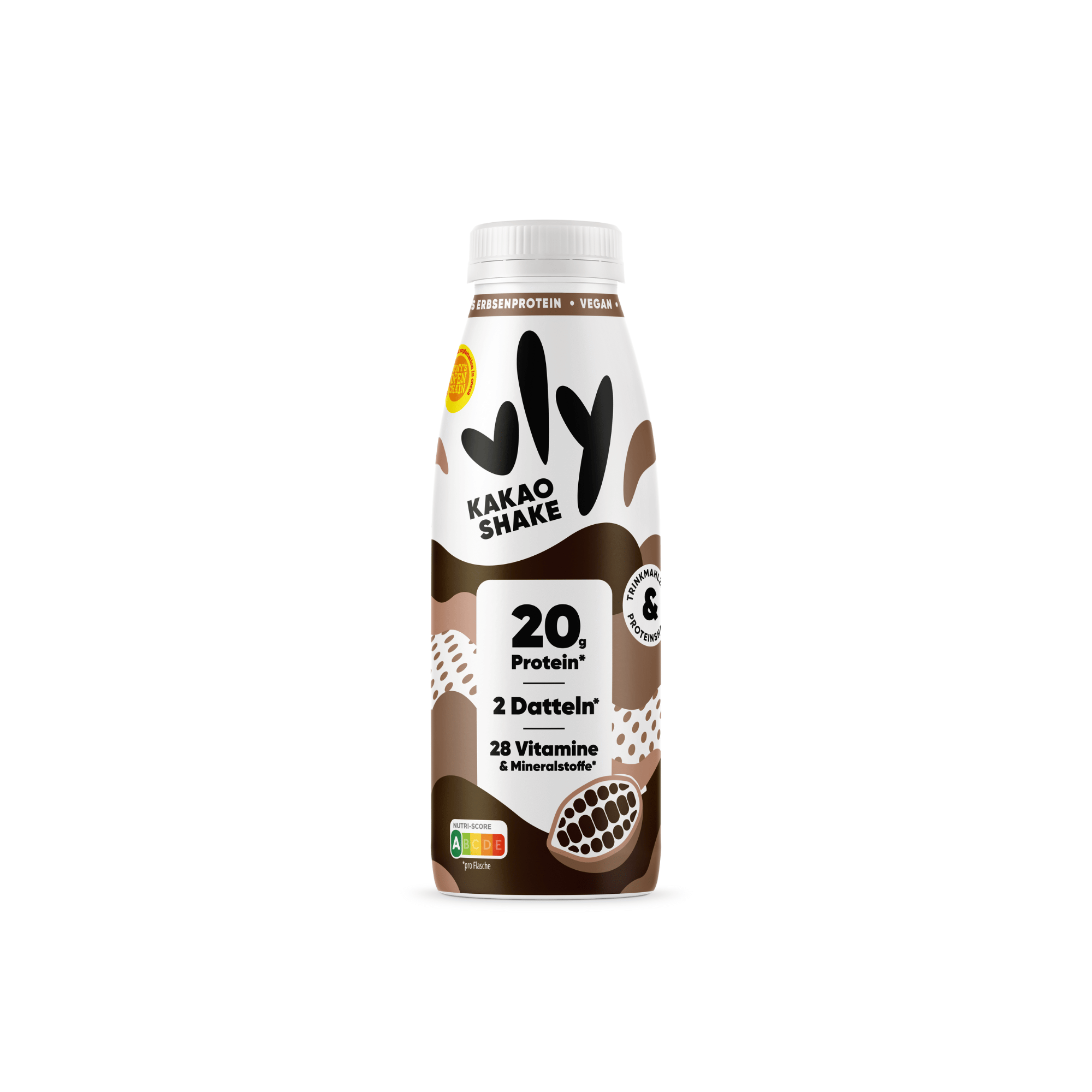 Dieser Kakao hat’s in sich! Eine Flasche vly Kakao Shake enthält 20 g Protein, die natürliche Süße aus Datteln und 28 Vitamine & Mineralstoffen. Als Trinkmahlzeit für zwischendurch oder Proteinshake nach dem Sport – du entscheidest. Jetzt probieren!