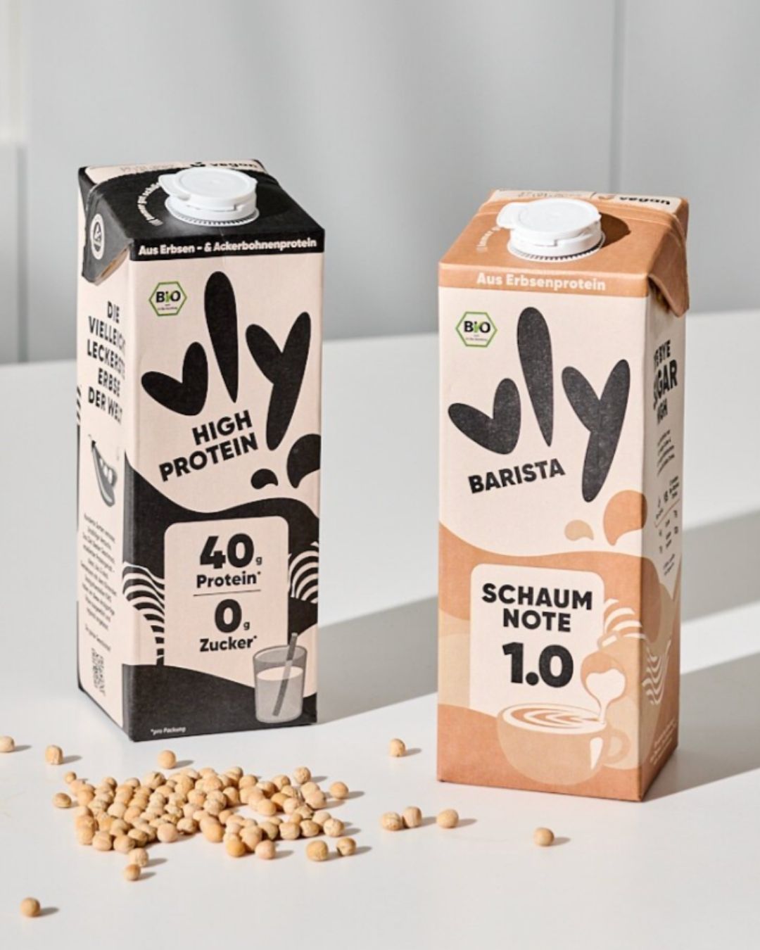 Wie du weißt, kommen unsere Proteine nicht aus dem Stall, sondern vom Feld. Vom Erbsenfeld, um genauer zu sein. Nach zahlreichen Prototypen, unzähligen Tastings und mehreren Anläufen haben wir es tatsächlich geschafft, Erbsen so ähnlich wie Kuhmilch schmecken zu lassen. Der große Unterschied: Der niedrige Zuckergehalt, der ökologische Fußabdruck von der Größe einer Erbse und natürlich der Nutri-Score A. Ach, ja und von Laktose, Kuh, Nuss oder Soja gibt’s auch keine Spur. That’s how we vly!