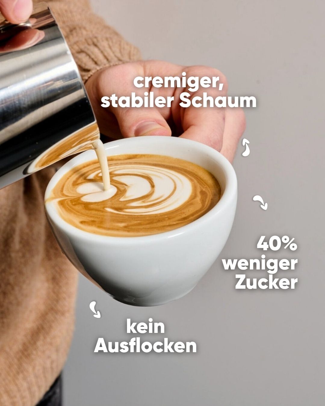 Das hier ist keine Milch und schmeckt trotzdem überall da gut, wo du eigentlich Milch verwenden würdest. Mit 3,5 % Fett kommt sie einer Vollmilch ganz schön nah. Pur aus dem Glas, im Müsli, beim Backen oder Kochen – das hier ist unser Alleskönner. Probier selbst!